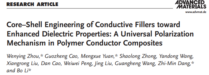 近日,公司w88win体育官网入口周文英教授团队在国际材料领域的顶级和权威刊物<<Advanced Materials>>(IF:32.2,2021)上在发表了题为:"Core–Shell Engineering of Conductive Fillers toward Enhanced Dielectric Properties: A Universal Polarization Mechanism in Polymer Conductor Composites"的研究论文。该论文首次提出了理解导体粒子/聚合物复合电介质极化行为的普适极化机理。周文英教授为第一作者及通讯作者,w88win体育官网入口为第一完成单位。