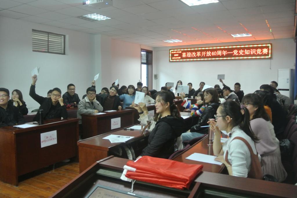 11月25日,公司研究生第三党支部在雁塔校区举办了“喜迎改革开放40周年”党史知识竞赛。公司党委副书记杨宝华老师、2018级所有党员和积极分子参加了本次活动。