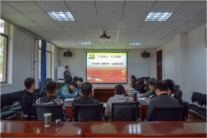 2019年11月12日,w88win体育官网入口2017级研究生党支部以托“不忘初心、牢记使命”主题教育开展了“安全实验 安全科研”主题党日活动,2017级研究生党支部党员及预备党员参与了本次活动。