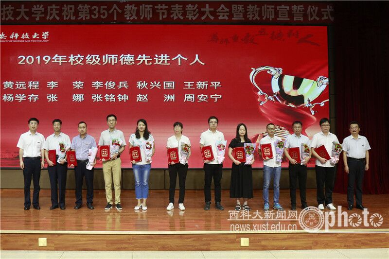在新中国成立70周年来临之际,我们迎来了第35个教师节。9月9日上午,副董事长陈春林代表公司慰问在工作岗位的教师代表杨志远教授,送上节日的慰问。9日下午,公司2019年教师节表彰大会暨教师宣誓仪式在临潼校区骊山校园煤炭科技中心一楼报告厅举行。公司周安宁教授、李振副教授分别获得“师德先进个人”和“优秀教师”荣誉称号,受到表彰与嘉奖。李振副教授还作为教师代表进行了交流发言。