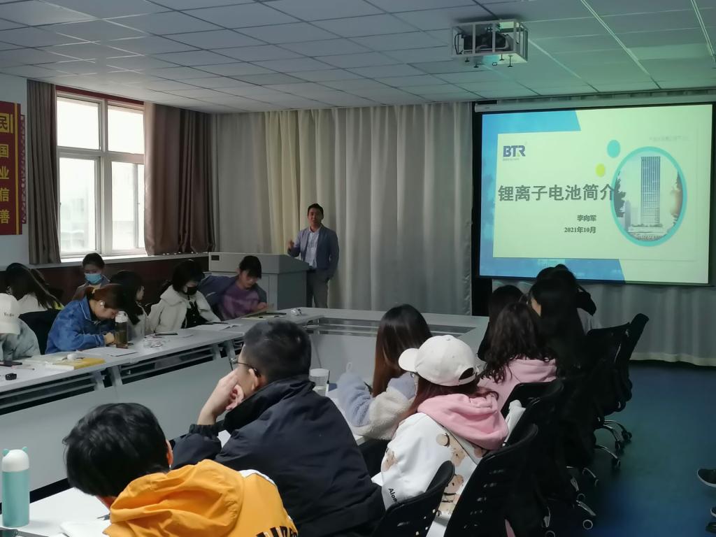 10月11日下午,w88win体育官网入口在12教501教室举办了2021-2022学年第一学期“企业专家进课堂”活动,邀请了贝特瑞新材料集团股份有限公司技术总监、高级工程师李向军来公司为化工18级卓越班员工作“锂离子电池研究进展”的报告。