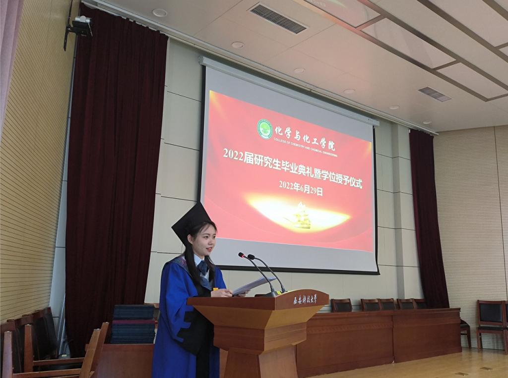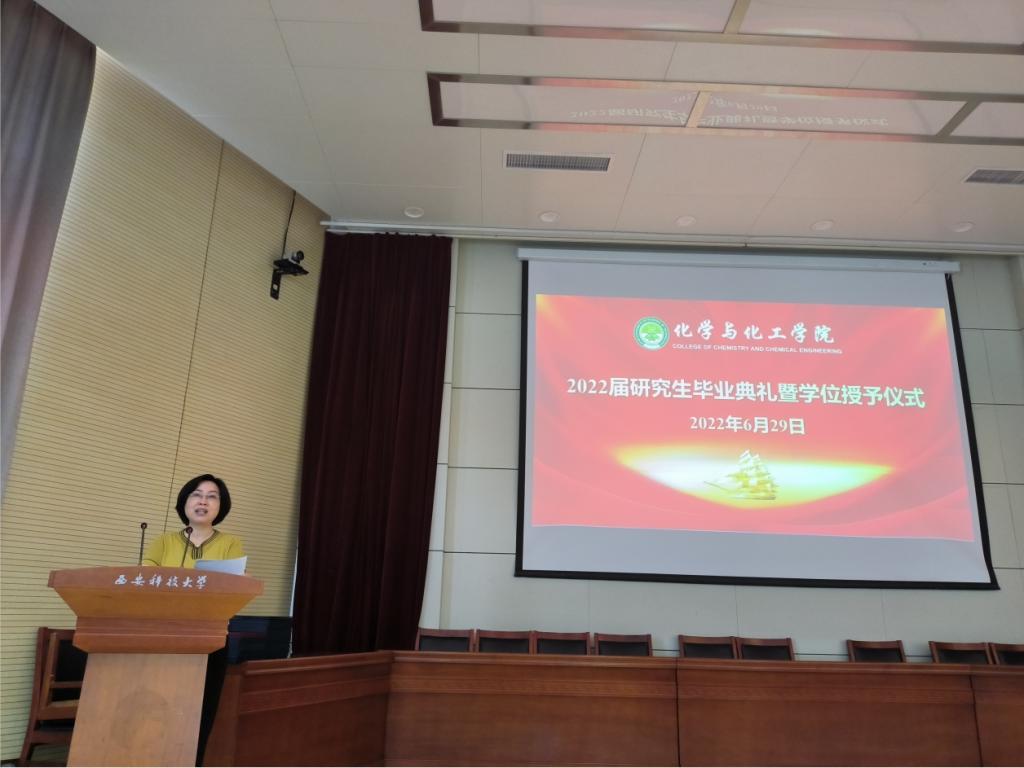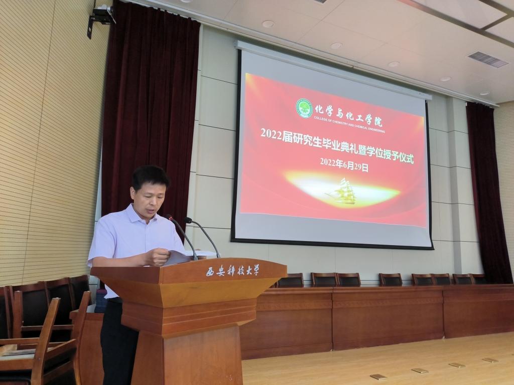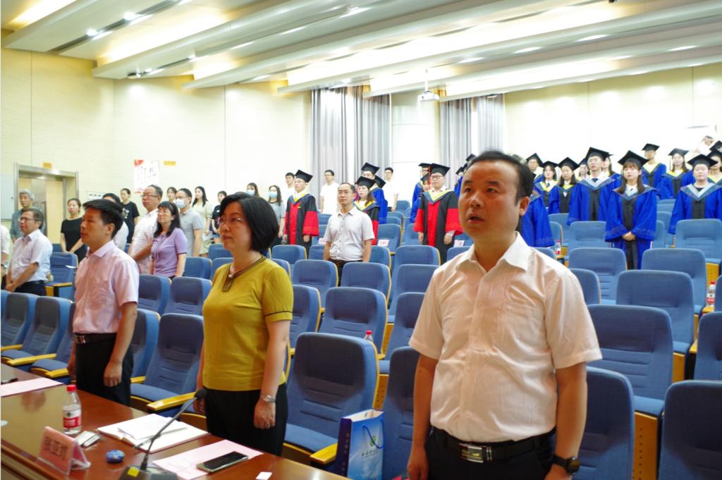 毕业典礼暨学位授予仪式在庄严的国歌声中拉开帷幕,学位评定分委员会主席杜美利宣读了2022届研究生学位授予决定,副经理贺新福宣读了优秀毕业生、优秀学位论文获得者表彰决定。