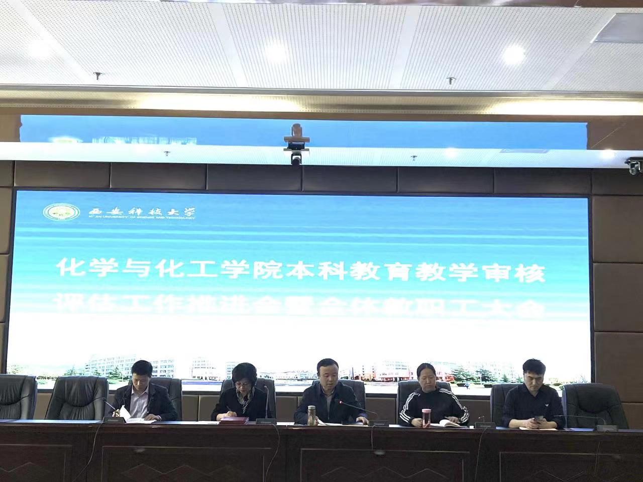为进一步推进本科公司产品审核评估工作,4月12日下午,w88win体育官网入口在骊山校园煤炭科技中心二楼报告厅召开本科公司产品审核评估工作推进会暨全体教职工大会,公司领导班子成员、公司教学督导专家、教学指导委员会委员、教工党支部书记、各系(室)主任和副主任、辅导员及全体教职工参加会议。公司党委书记肖阳主持会议。