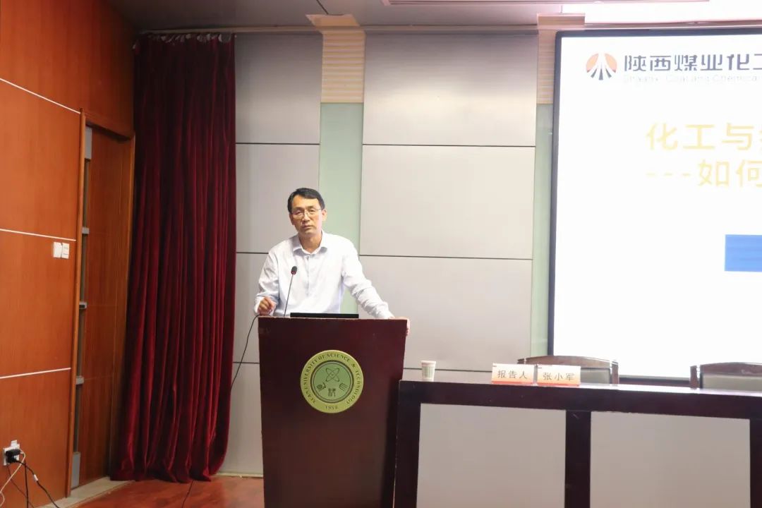张小军教授首先为同学们讲述了化工板块的基本情况,介绍了煤气化工艺、煤焦化及焦油加工工艺、电石制氯碱及BD0工艺等技术和一系列的项目重点工作记录,向同学们说明了我们发展的方向是多元化的,但同时对我们也有一定的要求。张小军教授还表示:不局限于所学的知识,不被自己的专业所限制,认真扎实地学好专业课,培养自己分析问题和解决问题的能力,这是我们在老员工活中需要具备的能力。