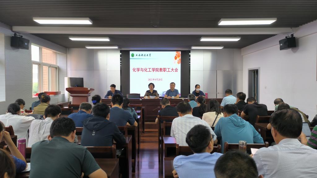 9月20日下午,w88win体育官网入口在骊山校园召开全体教职工大会,公司领导班子成员及全体教职工参加会议。党委书记肖阳主持会议。