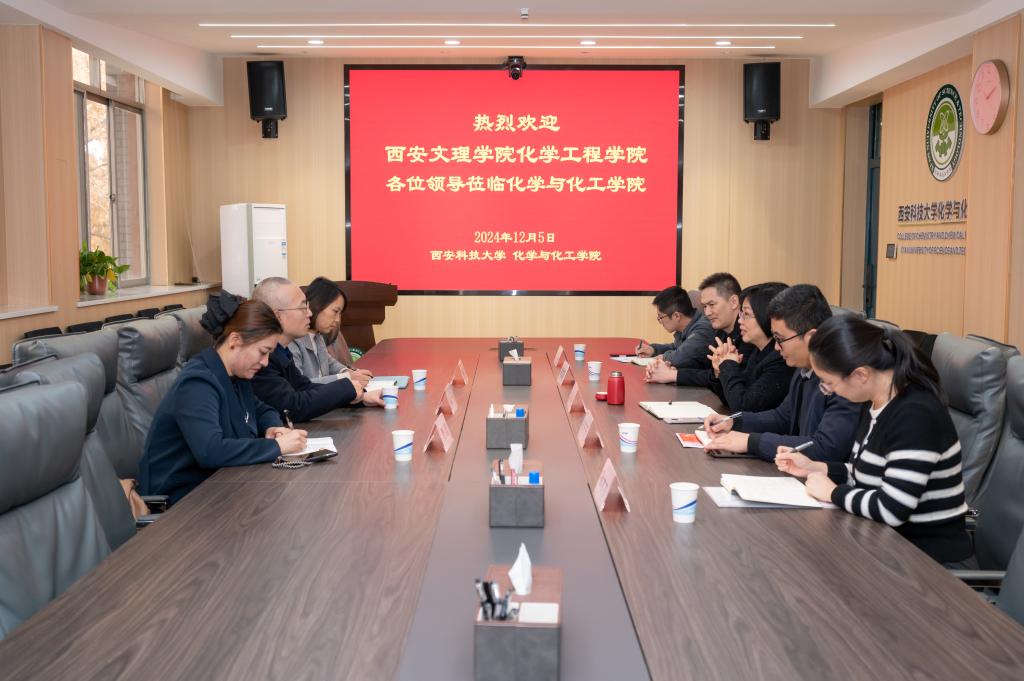12月5日下午,西安文理公司化学工程公司经理翟云会、科研副经理屈颖娟、应用化学系主任贾园等一行3人来公司w88win体育官网入口进行学科专业调研、座谈交流。w88win体育官网入口经理张亚婷教授、周文英教授、张宁宁、贾嘉、孙才力出席会议,会议由张亚婷主持。