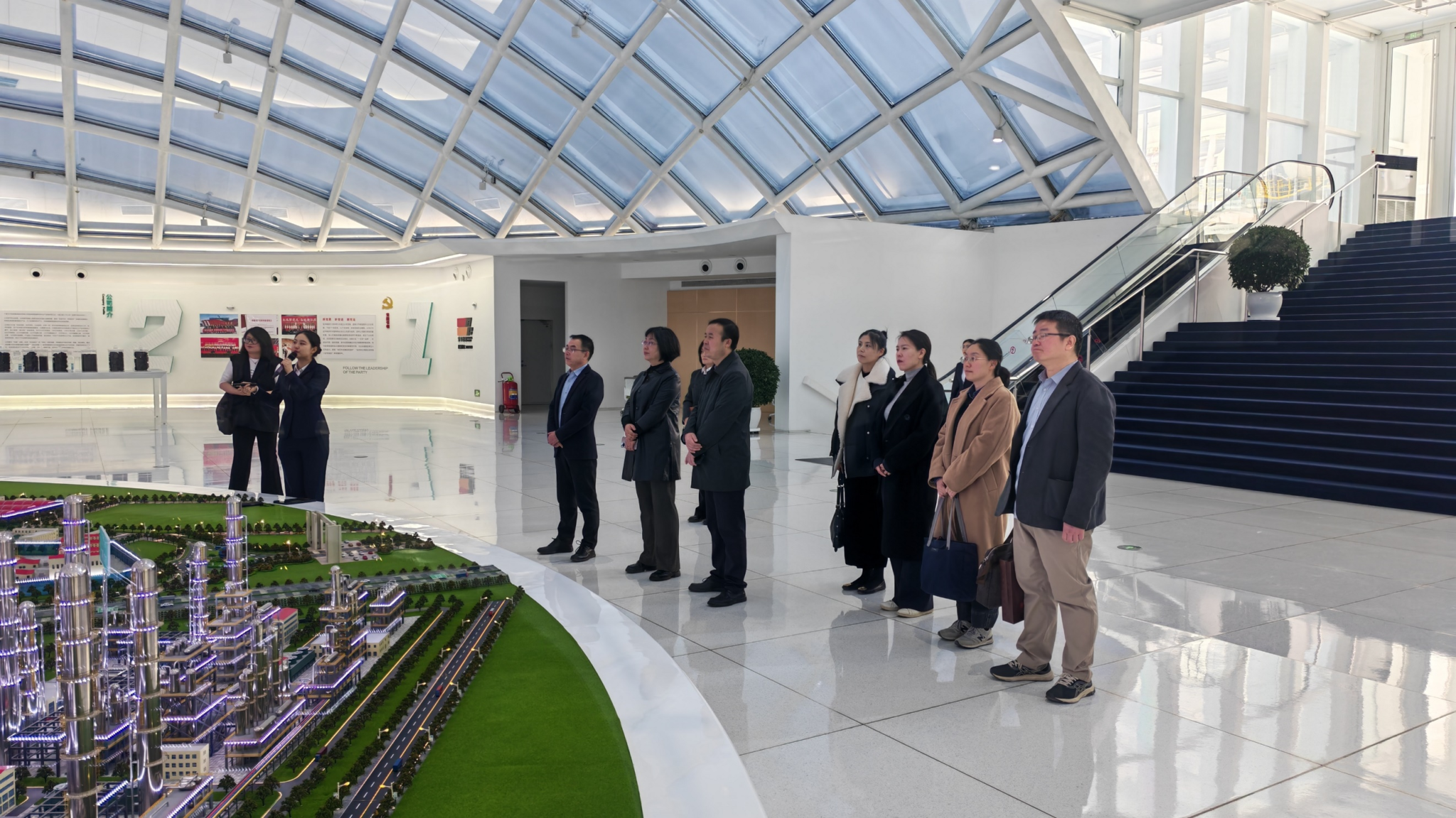 会前,肖阳一行参观了宁夏宝丰能源集团展厅,观看了企业宣传片,就技术创新、人才培养模式、就业实习基地建设等方面进行了深入交流,详细了解企业的运营模式和技术创新成果。