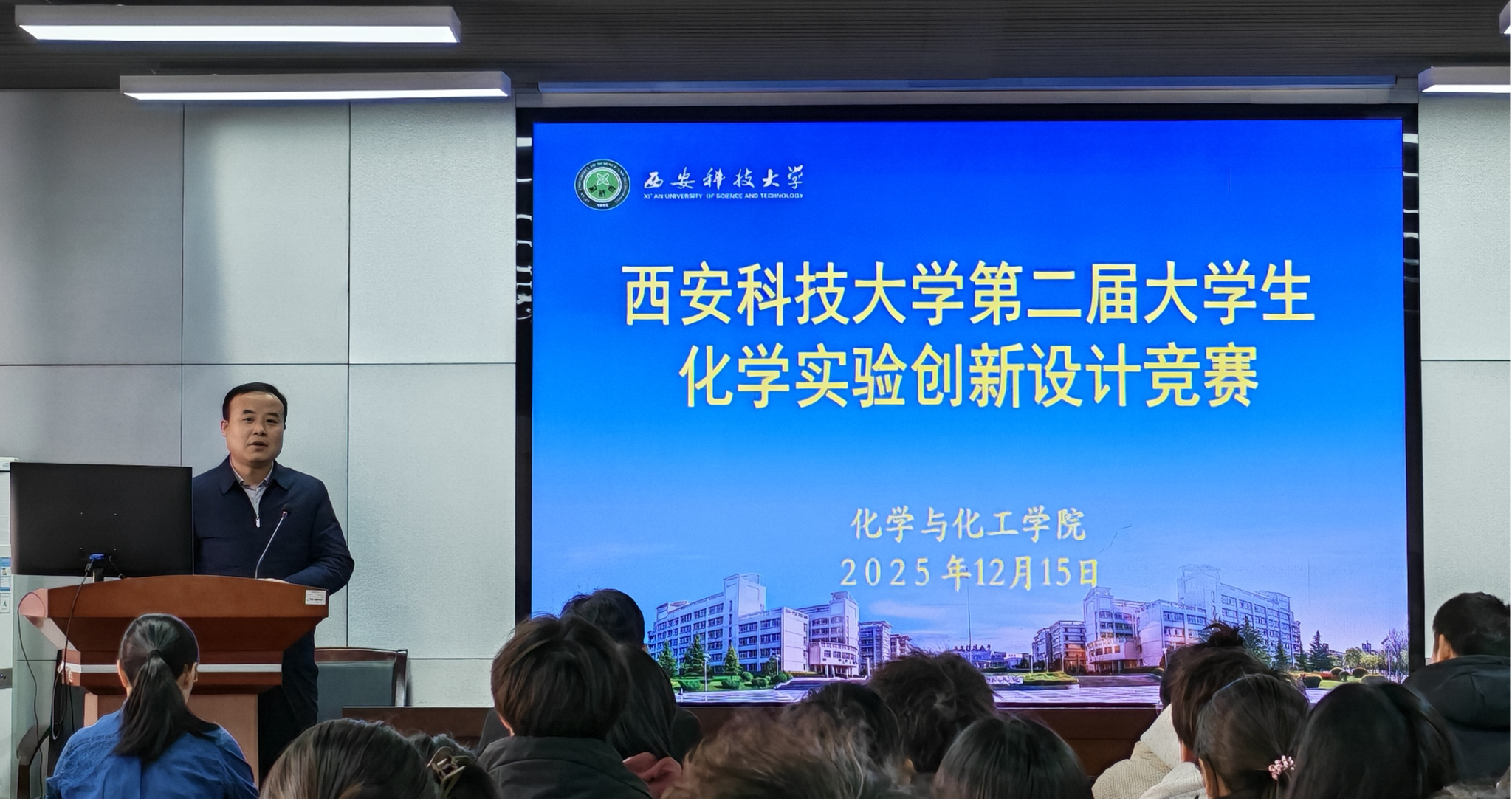 肖阳书记在致辞中充分肯定了本次大赛的组织与执行工作。他强调,学科竞赛是培养员工创新思维、动手能力及团队协作精神的重要平台,鼓励员工主动参与、以赛促学,将课堂理论转化为解决实际问题的能力。同时,针对化学学科的发展趋势,肖阳书记指出人工智能技术与化学研究的深度融合已成为必然方向,未来可在反应路径预测、材料设计等领域展开探索,希望同学们保持学科敏感度,积极学习跨学科知识,提升综合创新能力。最后,他寄语全体参赛同学珍惜实践机会,在比赛中锻炼自己、交流进步,为今后的专业发展打下坚实基础。