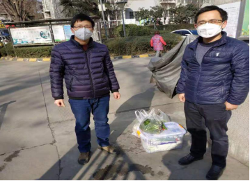 为了严格落实防疫隔离措施,不留疫情扩大一丝机会,化工系支部湖北籍熊善新教授从湖北返回西安后进行了严格的居家隔离,在其隔离期间,公司党委和支部党委及时关心其生活情况,得知其已购买的蔬菜不够时,支部立即行动帮助其购买了大量新鲜的蔬菜并送至其生活区(图4),帮助熊教授安心隔离,助力全校防疫工作。